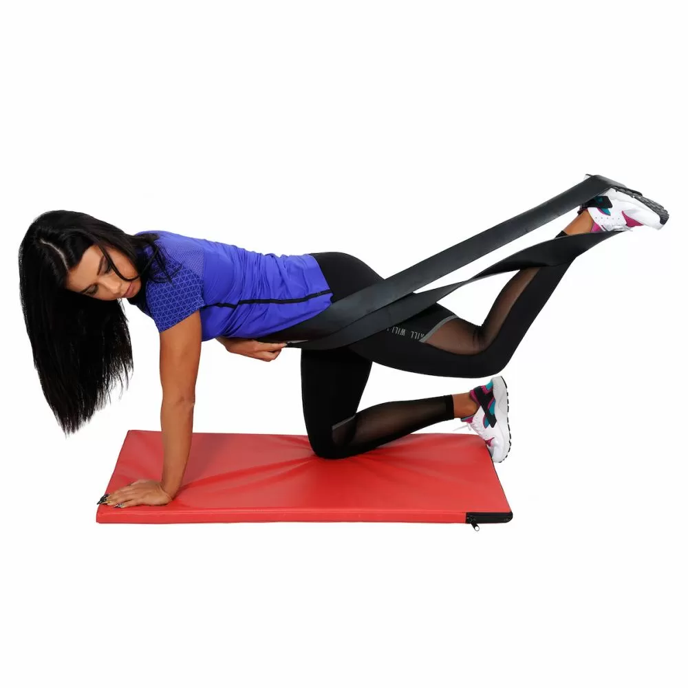 -gumu zakacite na sipku ili benc klupu za dodatno opterecenje tokom podizanja tereta, vezbajte sa njom sasmostalno, ili uz neki drugi rekvizit
