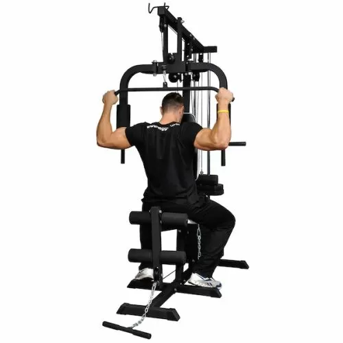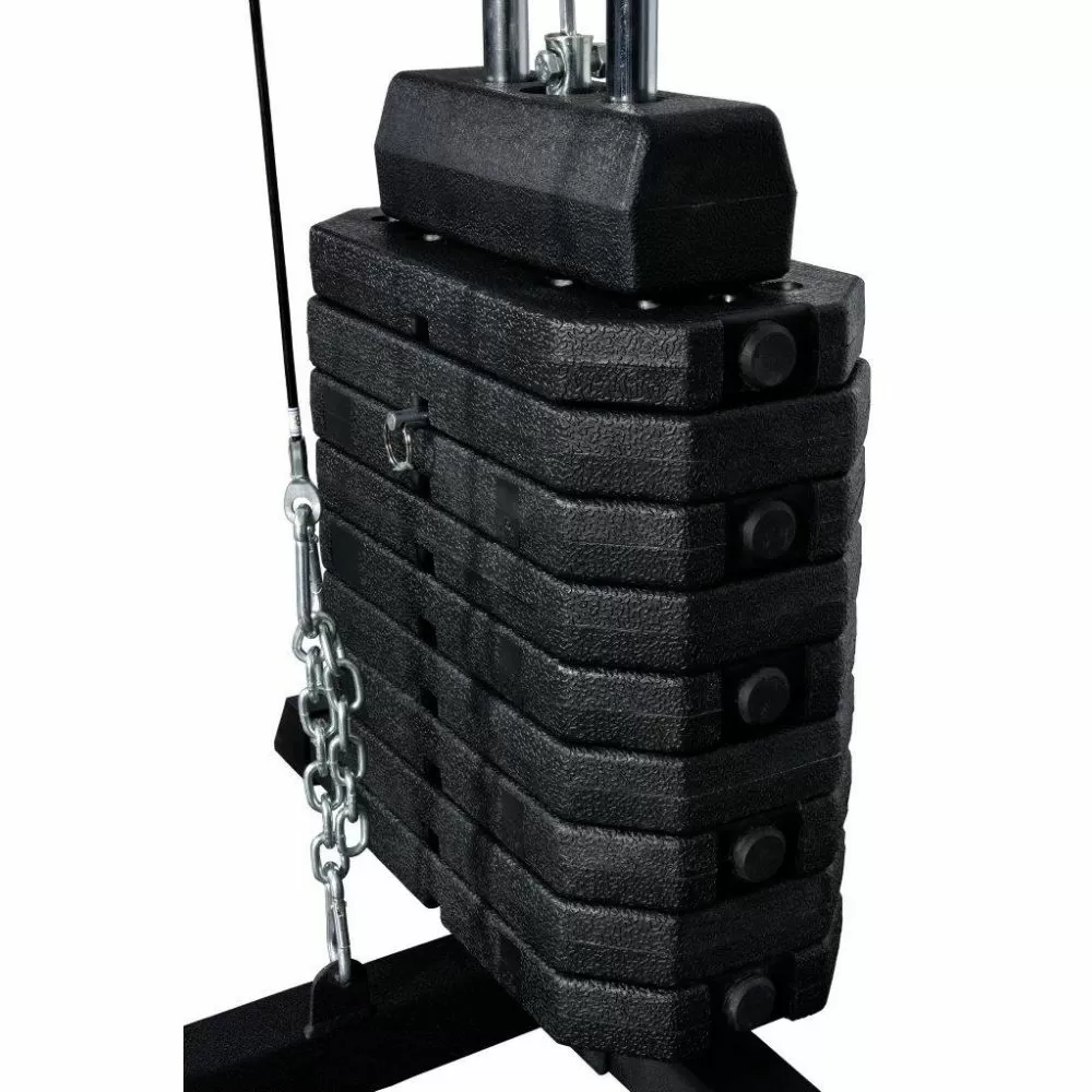 Odlična sprava za kućnu upotrebu. Dosta različitih vežbi se može izvoditi. Ne znam da li maxium 50 kg ili se može dodati još tegova.Svakako sasvim dovoljno za taj nivo rada.Tegovi su plastični tako da nema buke.Prezadovoljan.