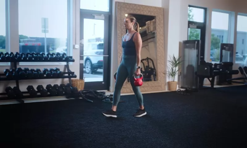 Hodaš 30 do 60 sekundi sa opterećenjem u svakoj ruci. Drži telo uspravno, lopatice stabilne.