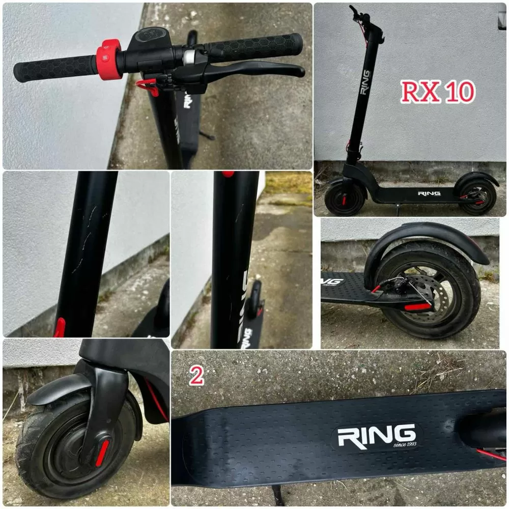 Ring električni trotinet RX 10 OUTLET, sitne ogrebotine, korišćeni modeli. Trotineti se šalju bez originalne ambalaže, strečovani. Uz trotinet upakovan adekvatan punjač. Pre upotrebe proveriti da li su gume dovoljno napumpane, proveriti da li su šrafovi za montazu vrata trotineta ušrafljeni. Trotinet je ispravan, normalno pali i radi, ali kapacitet baterije ne možemo garantovati. Trotinet se može registrovati.